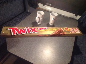 In den jahreszeitlich extra aufgebauten Süßwarengängen von Walmart fanden wir aber auch das folgende Produkt, ein yard (0,914m) gefüllt mit Twix!