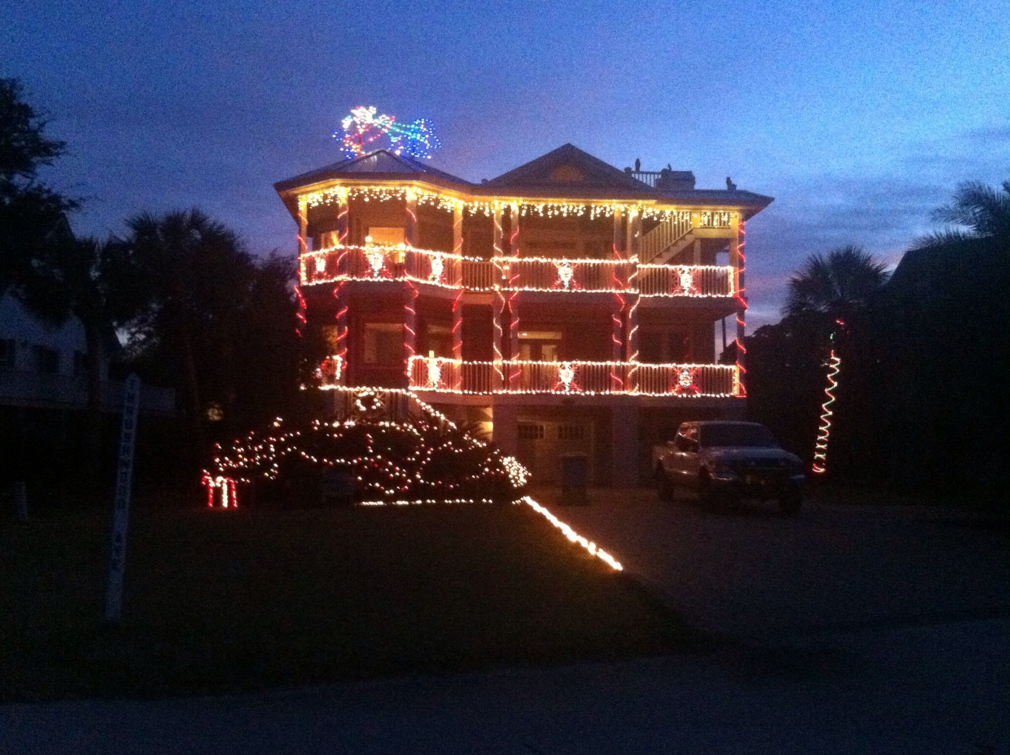 Christmas is definitely on it’s way. By now we haven’t got any decorations on board. We had 76 degrees Fahrenheit today and we went to the beach, sun bathing. But the Americans weren’t that lazy, they started to decorate their houses. The people opposite the street, residents, washed their car in the morning and put up the tree in the living room in the afternoon. Now both, the car and the tree, are sparkling, the car in black, the tree in blue, red and white.