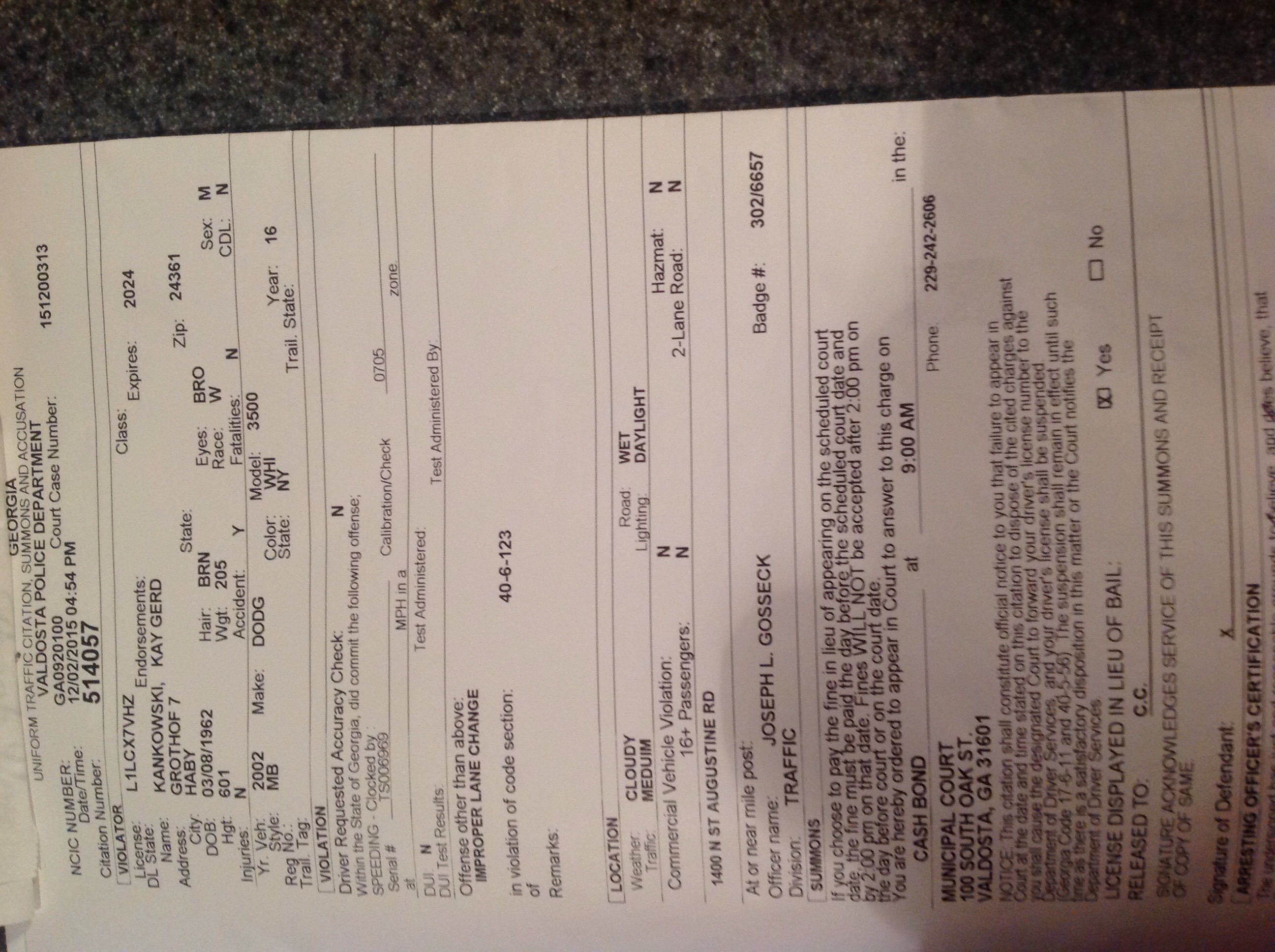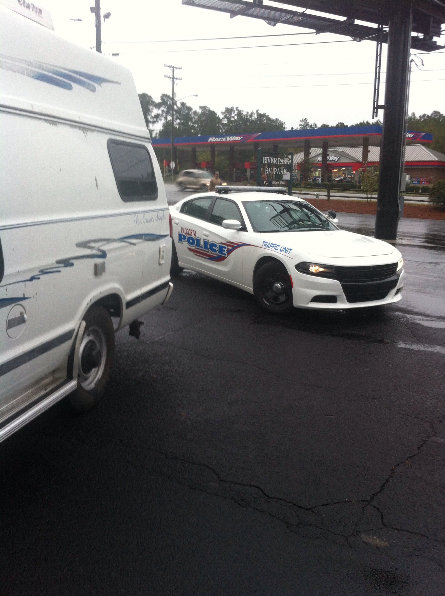 Today we had our first and hopefully only accident. Nobody was hurt, only the two cars involved are damaged. But both of them could still drive afterwards. The police came and checked very carefully Kay’s identity and fined him on the spot. The officer, who was very friendly and helpful, escorted us to the police headquarter to pay the ticket at once. Otherwise we would have a date with the court the next day, which is definitely not what we wanted. We’re just passing through Valdosta on our way to New Orleans.