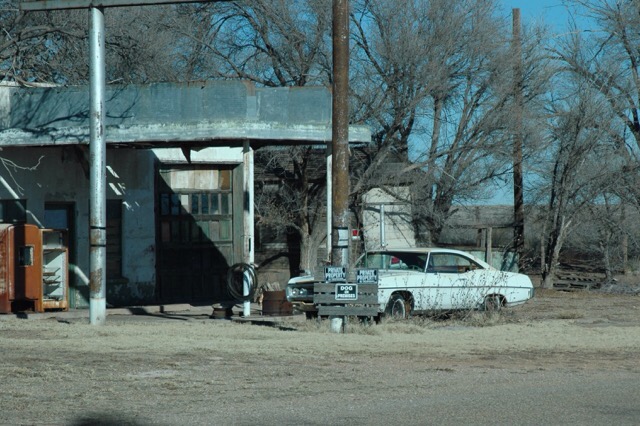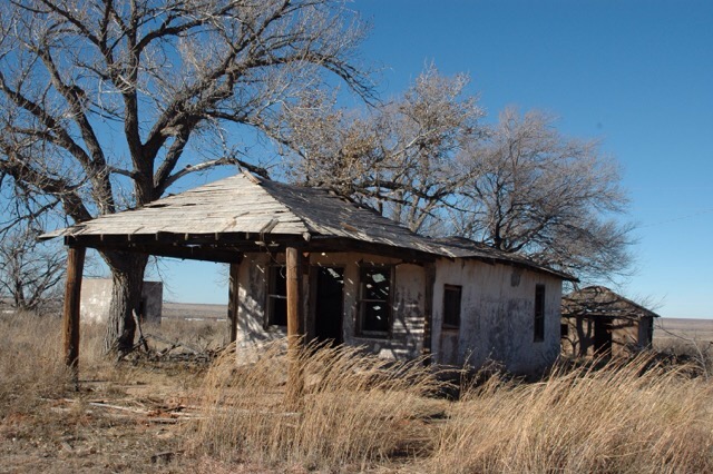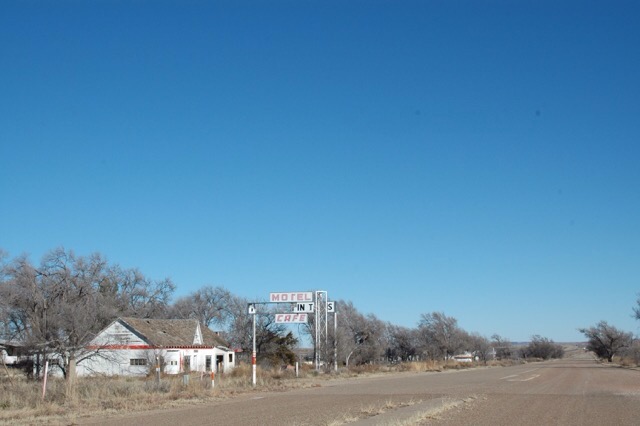 Und wieder hinauf auf die Interstate 40, die auf bzw. neben der Trasse der historischen Route 66 läuft, ein kurzer Tankstopp in Vega, und dann kurz vor der Grenze zu New Mexico noch ein Fotostopp in einer modernen Geisterstadt. Glenrio wurde erst zu Beginn des 20. Jahrhunderts gegründet und in den 1980ern von den letzten Bewohnern verlassen. Wir haben aber einen Neubau und eine bewohnte Ruine gesehen. Es müssen also Menschen dort wohnen.