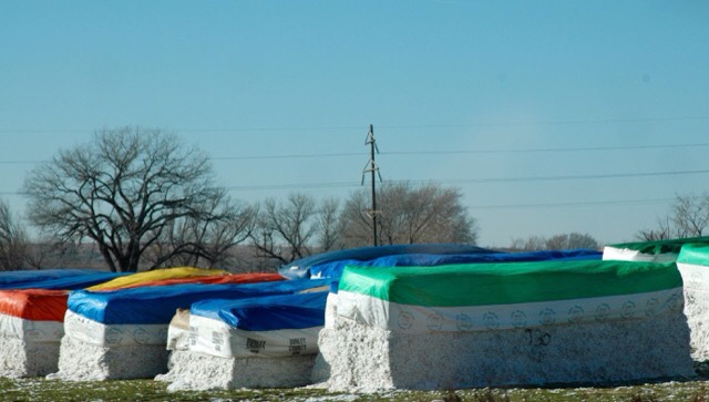 Wir sind an sehr vielen Baumwollfeldern vorbeigefahren, schon abgeernteten und welchen ganz in weiß. Baumwolle wird erst nach dem ersten Frost geerntet, weil sich dann Stengel und Püschel besser voneinander trennen lassen.