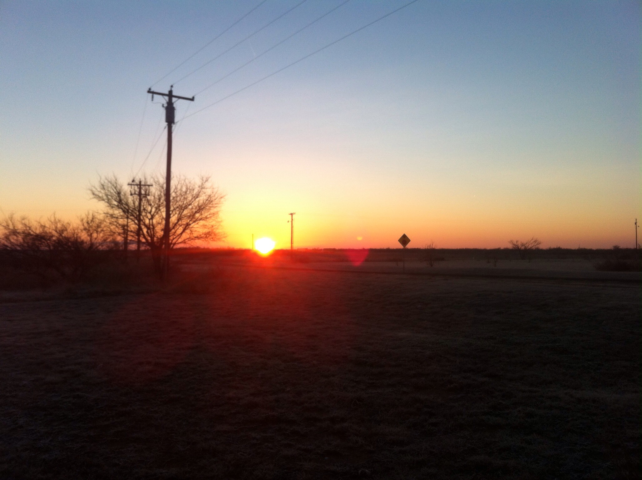 Die restliche Fahrt durch Texas begann sehr kalt, bei minus fünf Grad und mit Eisblumen an den Fensterscheiben, von innen! Dafür gab es einen sehr schönen Sonnenaufgang in der Pampa.