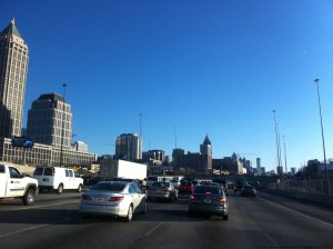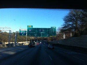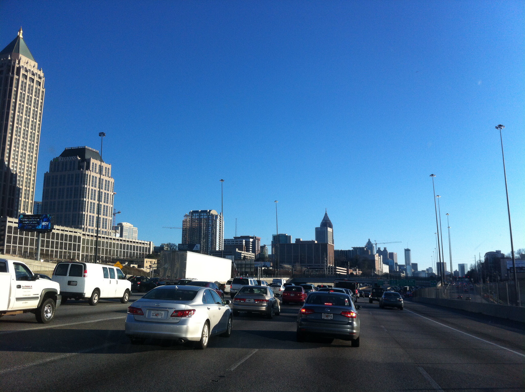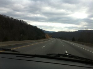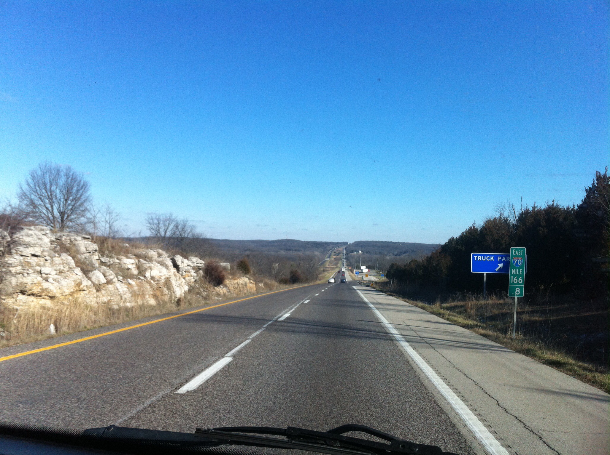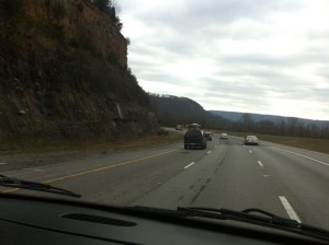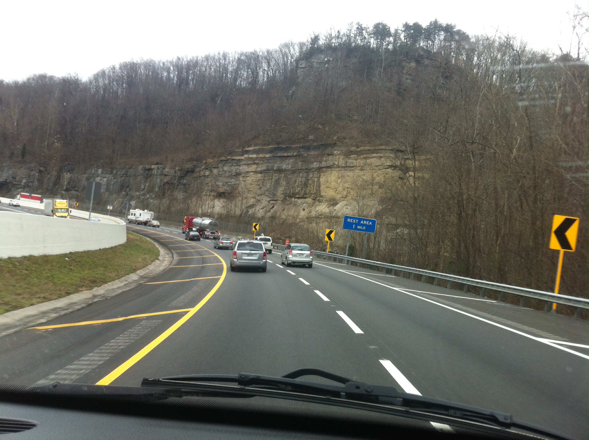 going up hill somewhere in Tennessee going down againstill going down, a runaway ramp for trucks on the left sidenorth of Atlanta, before rush hour