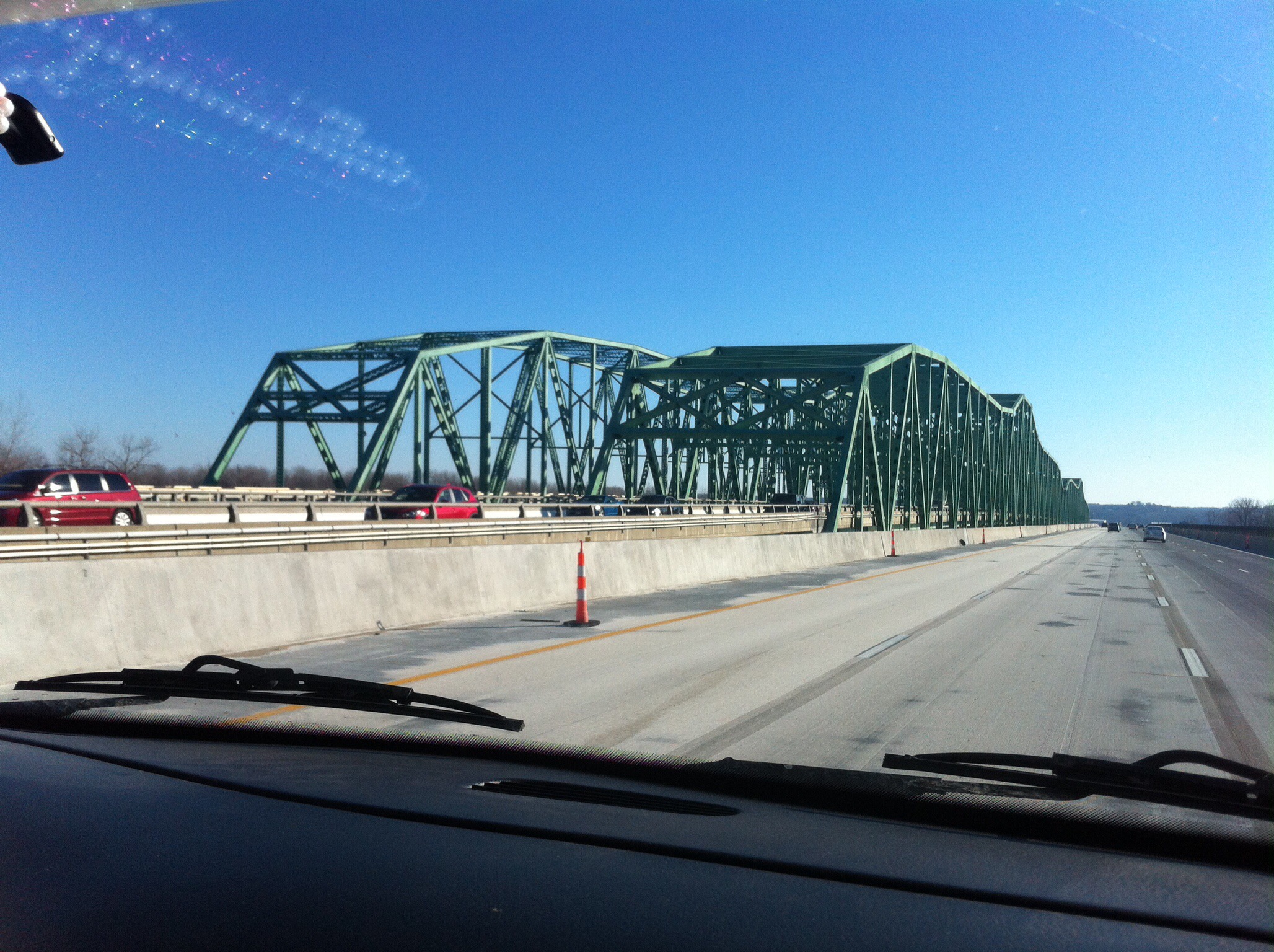 Heute haben wir Kansas City, die Wärme und den Komfort eines Hauses und die liebevolle Gastfreundschaft verlassen und sind Richtung Osten gestartet, ausgestattet mit leckeren Rezepten, einem Pecan Pie, Musik-CDs und vor allem einem elektrischen Heizlüfter. Wir sind quer durch Missouri und Illinois bis kurz hinter die Grenze von Kentucky gefahren und haben dabei viele kleinere Flüsse, aber auch den Missouri, den Mississippi und den Ohio River mittels riesiger Brücken überquert. Alle führen hier sehr viel Wasser, aber die überschwemmten Straßen, die wir im Fernsehen gesehen hatten, sind hier schon wieder trocken.