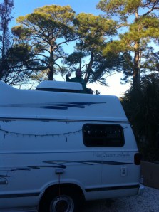 Yesterday we crossed three states on our way, Kentucky, Tennessee and Georgia, to get as quickly as possible to our beloved Tybee Island, where it is cosy and warm, the ocean only three blocks away. We drove nearly 650 miles and lived on trail mix, Ritz crackers, coffee and water. After 13 hours we arrived on the campground in Tybee Island and we felt instantly at home. In our planning, we didn’t consider the hugeness of Atlanta with all the road works and the rush hour, the different time zone and the time we needed for filling up gas, visiting the restrooms and finding and buying a new faucet for the van. Luckily Kay was able to build it it today. It took him just 15 minutes. The people in the shop would have needed an hour at least to do it. They considered several hours to find a shroud for the AC and to fix it with just four screws! We left without it. It has to be done while we are near Savannah. Now we are in the sun, it’s getting warmer each day, says the forecast, the ocean is nearby. We planned this for California, but this winter, it’s just too cold and rainy there, and too expensive for us, even on a campground far away from the Pacific Ocean. Now we’re on the Atlantic again, happy and we’ll stay here for a month.