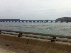 Shenandoah River Potomac RiverSusquehanna River relaxing, sunbathinghaving a late lunch Today we took only US highways to get from Virginia to Pennsylvania, a good decision, because especially the first part led through a gorgeous landscape. On our way we crossed several big rivers, Shenandoah, Potomac and Susquehanna and drove through four states, Virginia, West Virgina (just a few minutes), Maryland and Pennsylvania. Now we’re back in Amish County and it’s even lovelier than in November, because the sun is shining and it’s warm, 68 degrees, springtime!!