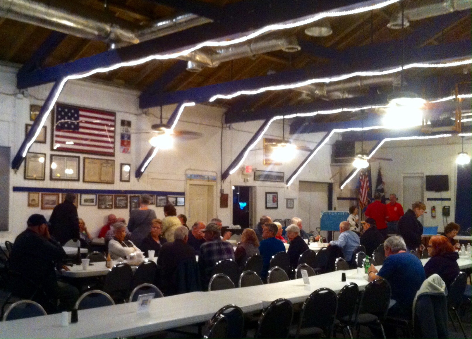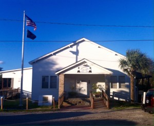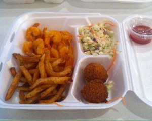 American Legion, Tybee Island Post fried shrimps dinner, with french fries, coleslaw and hush puppies, but no grits pleaseinside the American Leagion building