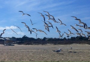 Das vergangene Wochenende erlaubte uns einen tieferen Einblick in die amerikanische Lebensweise. Eigentlich haben wir Dinge gemacht, die wir auch zuhause machen: wir waren im Kino und zum Bingo-spielen. Same, same but different. Nur an der Oberfläche sieht es gleich aus.Alle Menschen, mit denen wir hier in Kontakt kommen, fragen uns über kurz oder lang, wie wir es denn hier finden und was so anders ist. Und das ist so schwer zu erklären, vor allem weil die Menschen hier meistens nur über eine Aufmerksamkeitsspanne von maximal 20 Sekunden verfügen und den Erklärungsversuchen von daher schon nicht folgen können. Da die meisten aber auch nur in Ausnahmefällen aus ihrem riesigen Land heraus kommen, können sie es sich schon einmal gar nicht vorstellen, dass es auch andere Erfahrungswelten außer ihrer eigenen gibt, die genauso Gültigkeit haben. Ein Beispiel von hier: alle, wirklich alle Menschen, ob Touristen oder Einheimische, wollen unbedingt, dass wir Fort Pulaski besuchen. Es ist sooo groß-ar-tig und sooo alt!! Dass wir alte Befestigungsanlagen und Schlösser zuhauf in Großbritannien gesehen haben, die weitaus älter sind, ist ihnen einfach nicht begreiflich zu machen, da doch das Fort hier schon sooooo alt ist, aus dem 19. Jahrhundert und darüber hinaus ein National Monument. Wir werden das weiterhin aussitzen und lieber Strandspaziergänge am Atlantik machen und Möwen aufscheuchen, um einmal andere Fotomotive zu erhalten.