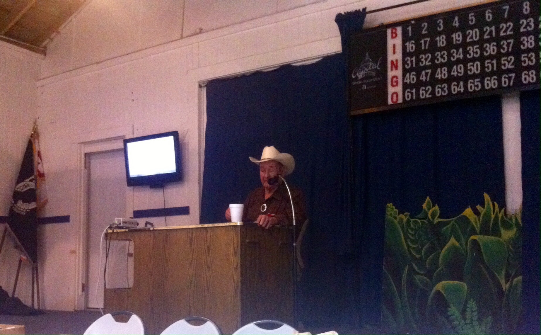 Die Zahlen befinden sich auf Kugeln, die automatisch gezogen werden. Die Kugel wird dann vor eine Kamera gelegt und auf diverse Monitore übertragen (die Profis beginnen schon jetzt, diese Zahl auf ihren Papieren zu suchen und zu markieren), bevor sie ausgerufen und auf dem Tisch des callers abgelegt wird. Der caller schaltet gleichzeitig das entsprechende Licht auf der großen Anzeigetafel an und erst dann ruft man „Bingo“, auf keinen Fall schon vorher, wenn die Kugel auf den Monitoren zu sehen ist. Martina hatte keine Zeit, dieses Procedere richtig zu verstehen und eine Routine zu entwickeln, weil sie gleich das erste reguläre Spiel gewann. Die Überraschung war gelungen, danach wusste der gesamte Saal, wer der Gast aus Deutschland war. Als Gewinn bekommt man Bargeld ausgezahlt, aber bevor die $60 die Seite wechseln konnten, wurden die Zahlen kontrolliert (wie bei uns, allerdings musste ein weiterer Spieler den Kontrolleur beim Ausrufen kontrollieren) und die Identität musste nachgewiesen werden. Da Martina alle Ausweismöglichkeiten im Camper gelassen hatte, übernahm Frankie den Part mit ihrer driving license. In der Pause kann man weitere Sonderspiele kaufen oder sich mit Snacks und Getränken versorgen oder einfach weiterspielen mit einem Verfahren, das nicht weiter erklärt wurde. Frisch zubereitetes Popcorn war der Hit bei den Snacks und sehr gern wurde ein quietschgelbes Pulver darüber gestreut. Das sah ganz hübsch aus, entpuppte sich aber als Käsegeschmack. Wie Frankie erzählte, gibt es dieses Pulver in allen möglichen Geschmacksvarianten, z.B. bacon, und es wird sehr gern über das Popcorn gestreut; alles was die Lebensmittelchemie so hergibt, auf jeden Fall muss es bunt sein.