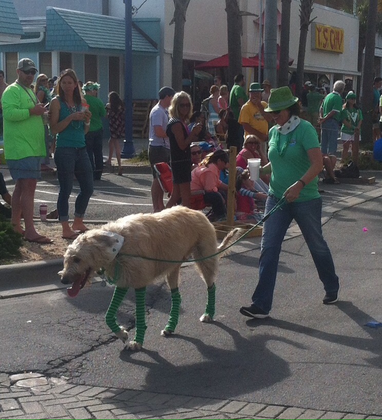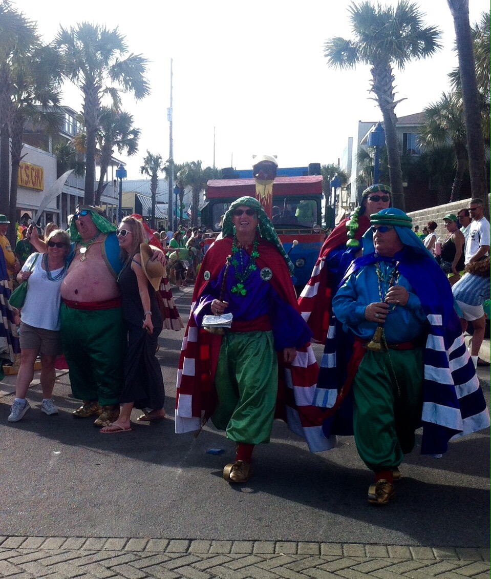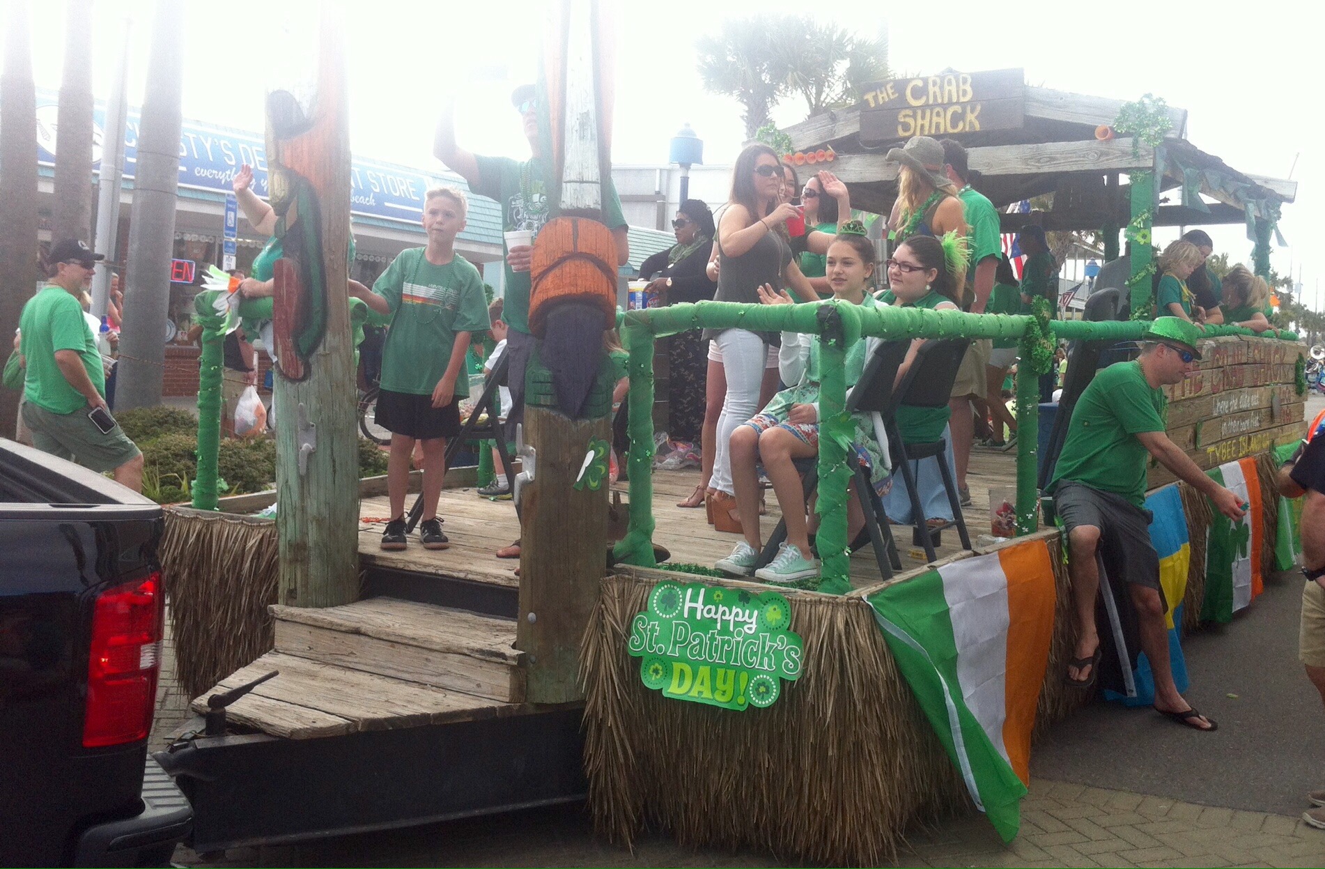 The Crab Shack float an Irish Samba marching band, good music!Irish mermaid a typical Irish fluffy animalthe dog must be an Irish breed Irish sheiks or even eunuchs, who knowsIrish pirates Irish coke, of coursean irish-scottish invader from the sea the entourage of the 2014 Beach Bum Queengiant Irish peanut the colour green rules the world: mint julep queens and princessesand even more Irish pirates Yesterday’s Irish Heritage Parade was much bigger than the last parade we’ve seen on the island. Everything was green and everybody was Irish, at least for one day and the parade. People need a reason to get drunk already in the afternoon. We were lucky because we actually participate in the parade. We drove on the campground ’s float, waved our arms off and shouted ‚Happy St. Patrick’s Day‘. And we took pictures of all the amazing green people. For Northern Europeans and Americans from the Northern states this is pure summer feeling right now. Day temperatures around 79 degrees and 64 degrees at night. People on the beach are dressed accordingly, bikinis and Bermuda shorts everywhere, even if their physical appearance sometimes would suggest a more appropriate apparel.