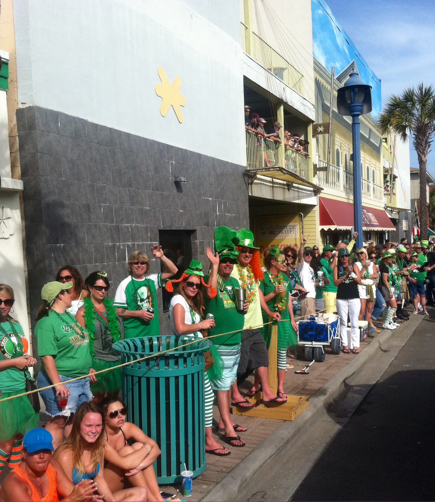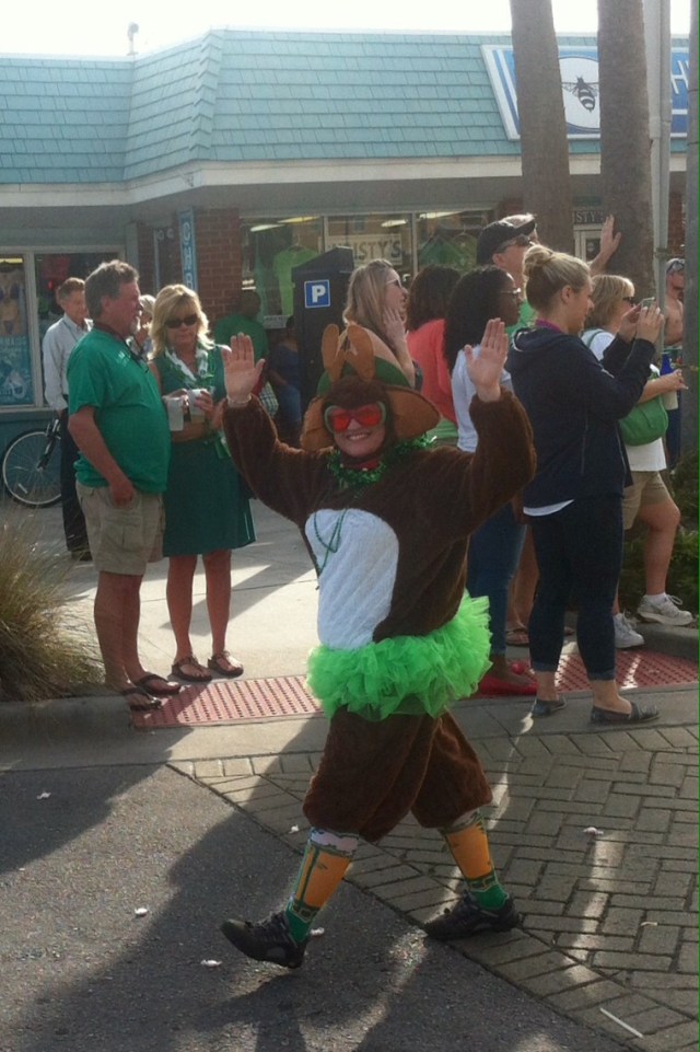 Wir Norddeutschen, und mit uns die Besucher aus den Staaten Maine, New York, Illinois usw. sind inzwischen im Hochsommer angekommen, bei 26 Grad Tages- und 18 Grad Nachttemperaturen. Der Strand ist bevölkert mit jungen und nicht mehr ganz so jungen Frauen in Bikinis, die männlichen Gegenstücke tragen einheitlich buntgemusterte Bermuda-Badeshorts. Die sehr dicken Frauen sind freundlicherweise meistens in lange bunte Kleider gehüllt, die sehr dicken Männer tragen leider ihre nackte Wampe, gestützt von den schon erwähnten Bermudashorts spazieren. Die Einheimischen dagegen bestehen darauf, dass es immer noch Frühling ist und laufen in T-Shirts, langen Hosen und Strickjäckchen herum. Aber alle haben eine gute Zeit hier. Die Schulen haben in der nächsten Woche frei und auch an den Colleges rundherum ist spring break. Der nächste Feieranlass steht ebenfalls an, am 17. März ist St. Patrick’s Day, der hier in den Staaten ein Feiertag ist. Überall ist es grün dekoriert, die shamrocks hängen glitzernd überall an Türen und Wänden. Hier auf Tybee Island wird schon einmal für das große Ereignis (in Savannah findet nächsten Donnerstag die zweitgrößte St. Patrick’s Day Parade der USA statt) vorgeglüht. Vorgestern gab es im Theater die First Annual Irish Jamboree, da sind wir aber nicht hingegangen. Es gab dort Irish adult beverages zu kaufen, wir würden einfach Guiness und Kilkenny dazu sagen. Der Bierwagenfahrer, der die Vorräte am Abend vorher dorthin liefern sollte, war anscheinend noch nie vorher auf der Insel gewesen. Wir trafen den großen Truck während unseres Spaziergangs mehrmals in den Straßen, bis er uns dann schließlich ansprach, wo denn so etwas wie ein Theater hier zu finden wäre. Glücklicherweise konnten wir ihm helfen, und so stand der Sause nichts mehr im Weg.