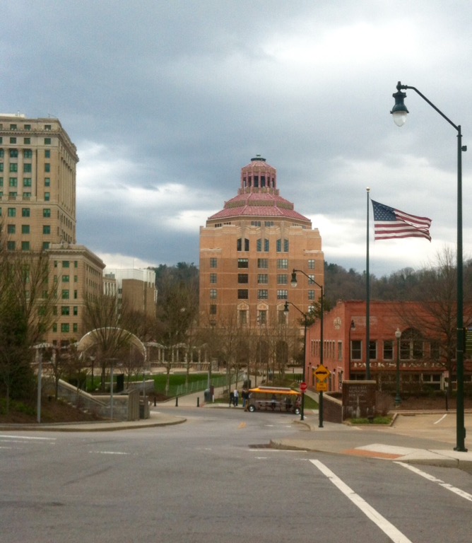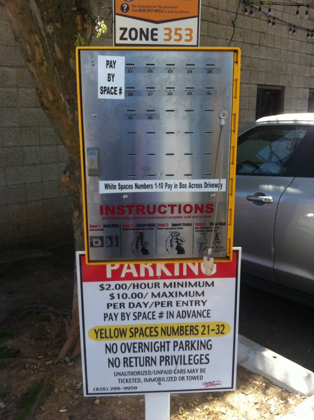 downtown Asheville, NC City Hall, Ashevilleeine Menge Parkplätze hatten diese „Spardosen“: man parkt und steckt das Geld für den Parkplatz in den Schlitz mit der gleichen Nummer