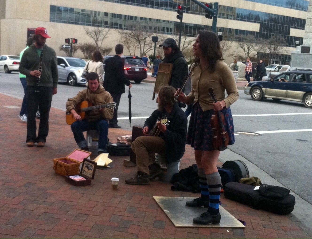 We stayed at friends we met on Tybee Island last November for a couple of nights and another couple of nights on Bear Creek RV park in Asheville and we had a great time, a blast! We drove along Blue Ridge Parkway, explored downtown Asheville, discovered West Asheville, a flourishing district with a lot of artists, galleries, restaurants and the ISIS, a restaurant and music hall, where we attended the CD release celebration of the Lonesome River Band and listened to really cool Bluegrass music. There were some good buskers in downtown Asheville as well and the food was delicious.