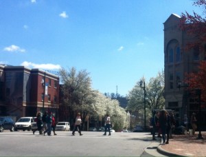 Es ist Frühling in den Appalachen, hier in Asheville sind viele Bäume über und über mit weißen Blüten bedeckt und es sieht wunderschön aus. Die für diese Gegend sehr hohen Temperaturen der letzten zwei Wochen haben auch die Apfelbäume zum Blühen gebracht. Wir sind hier in einem der größten Apfelanbaugebiete der USA und die Apfelfarmer fürchten einen Kälteeinbruch, dessen Frost die Blüten schädigt, so dass die Apfelernte in Gefahr wäre. In einem Vorgarten haben wir einen Baum gesehen, der von den Besitzern in eine Folienhaube gesteckt wurde. Das war eine gute Idee, denn just an den drei Tagen, die wir hier verbringen, sind die Temperaturen gefallen, nachts unter den Gefrierpunkt. Wir sind vom Hochsommer direkt in den Winter hineinkatapultiert worden und haben flugs unsere Wintersachen wieder hervorgekramt.