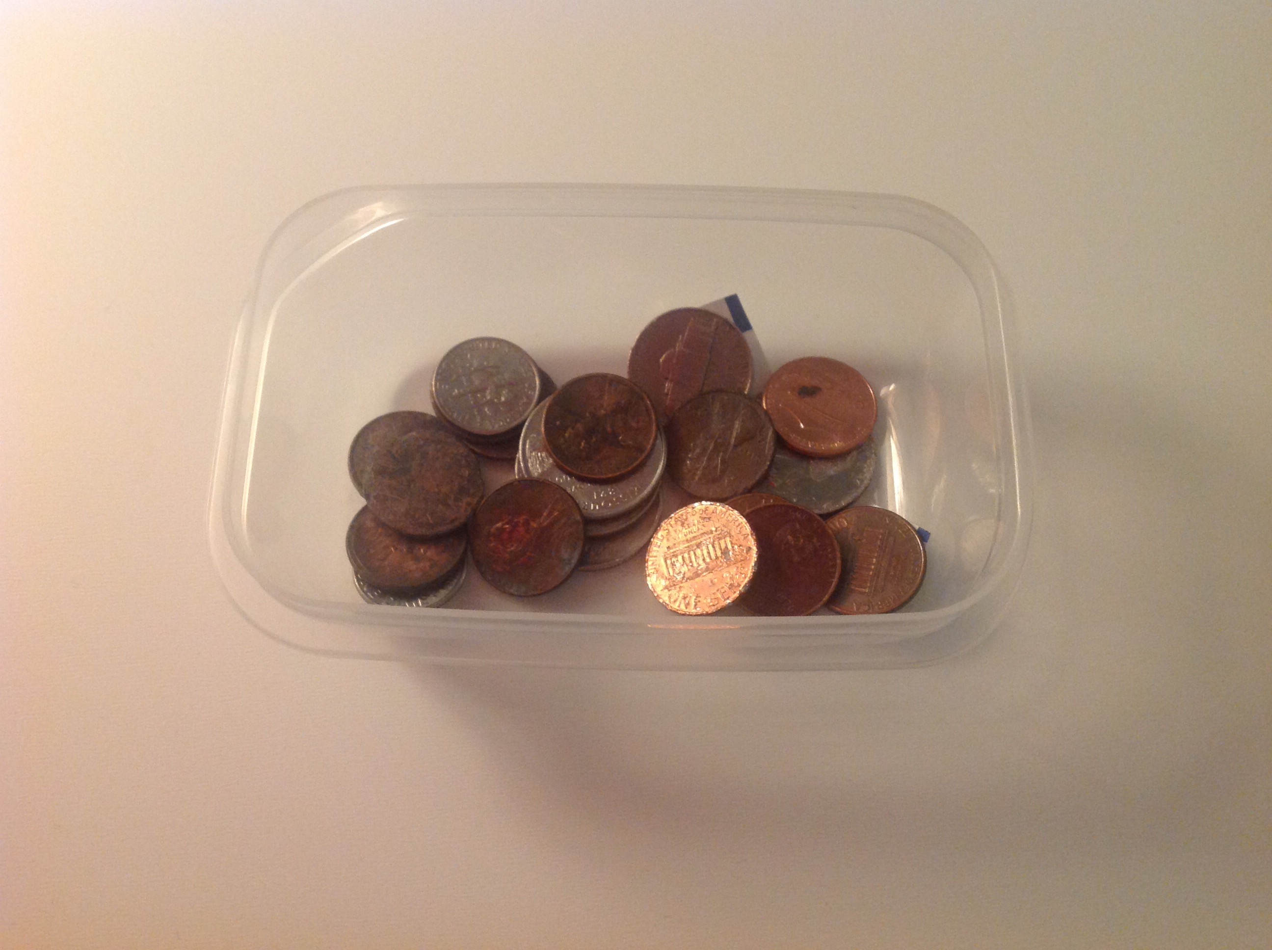 Von den frühen Jägern und Sammlern haben wir beide definitiv viele Sammler-Gene vererbt bekommen. Das war uns schon bei den Reisevorbereitung aufgefallen, so viele Dinge, die sich mit den Jahren bei uns angesammelt hatten und nun verpackt oder aussortiert werden mussten. Die Vereinigten Staaten stellen sich als wahres Sammlerparadies heraus, wenn man nur die Straßen entlang fährt oder geht. Allein aus den Teilen, die wir in den Gräben und Seitenstreifen der Highways und Interstates gesehen haben, hätten wir uns ein komplettes Auto zusammen bauen können. Wie gut, dass wir fuhren und so nichts aufsammeln konnten. Ganz anders beim Spazierengehen. Kays Sammlung an Unterlegscheiben und Muttern ist zwischenzeitlich aufgegeben worden, es wurden einfach zu viele und sie waren zu schwer zu tragen. Knöpfe liegen auch gern herum, eher in Bahnhöfen und Zügen. Die bleiben auch liegen, es sind meistens nur langweilige Anzugknöpfe. Münzen findet man überall. Bisher haben wir auf jedem unserer Fußmärsche zu Bus und Bahn oder zum Einkaufen mindestens eine Münze gefunden. Das Töpfchen auf dem Schreibtisch füllt sich langsam, aber stetig. Leider sind es meistens nur Ein-Cent-Münzen, sodass dort bis zum Ende unseres Aufenthaltes keine Reichtümer zu erwarten sind.