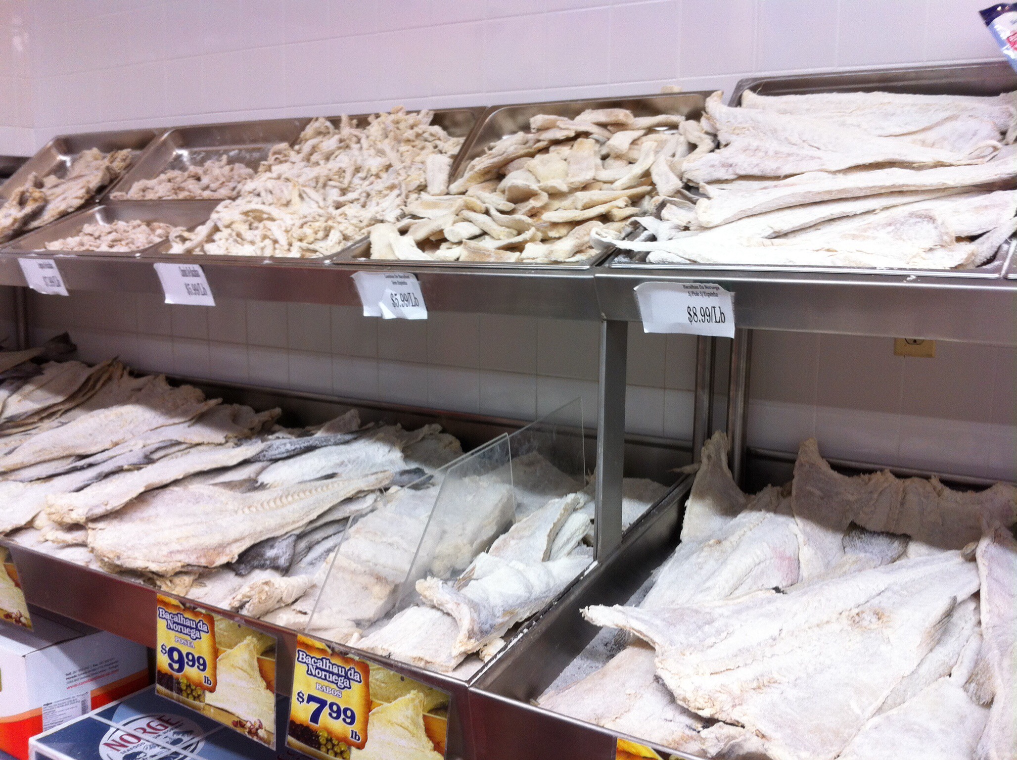 Ansonsten versuchen wir eher, die Menge an realen Gegenständen zu begrenzen, damit wir nicht noch einen Koffer kaufen müssen. Daher machen wir viele Fotos, z.B. die folgenden, die wir in einem ganz normalen Supermarkt in einer ganz normalen Wohngegend in unserem Nachbarort Harrison gemacht haben. Okay, das Wort ’normal‘ muss hier ins Portugiesische übersetzt werden, aber sonst…