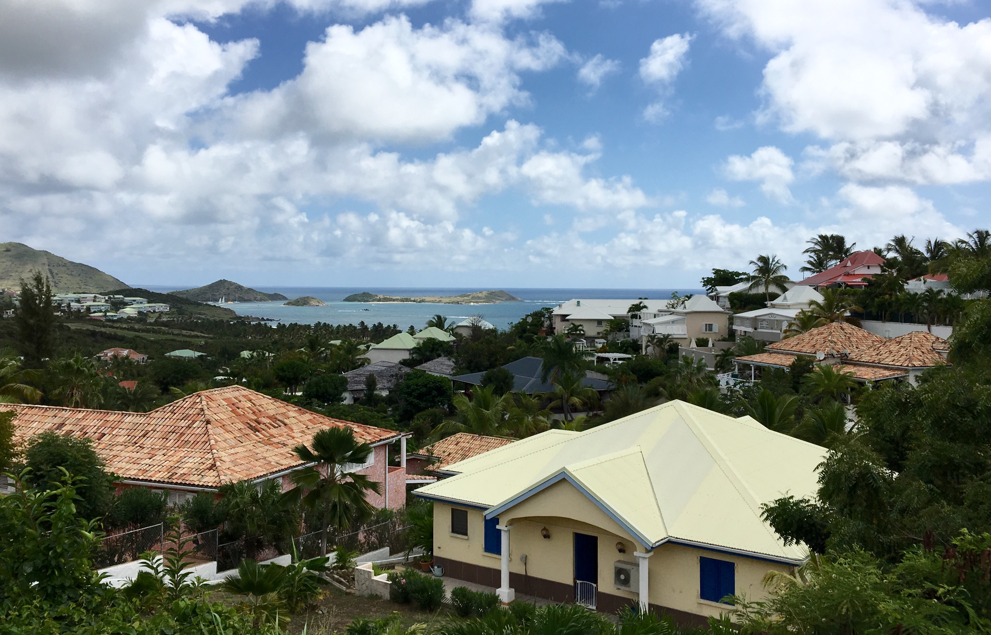 Die Grenze zwischen beiden Inselteilen ist erst einmal gar nicht so sichtbar. An den Straßen, auf denen man sie kreuzt, ist mit Flaggen in beiden Nationalfarben bestückt, manchmal steht auch ein Gedenkstein. Aber die Auswirkungen sind bemerkenswert. Auf der einen Seite beträgt die Stromspannung wie bei uns 230 V und man bezahlt mit Euro, auf der anderen Seite gibt es spezielle Gulden und die Geräte laufen mit 110 V. Aber überall kann man mit US-Dollar bezahlen. Es gibt auf der Insel nur Grundschulen. Für den weiteren Bildungsweg muss man z.B. entweder nach Curaçao oder nach Holland oder man geht nach Guadeloupe oder Frankreich