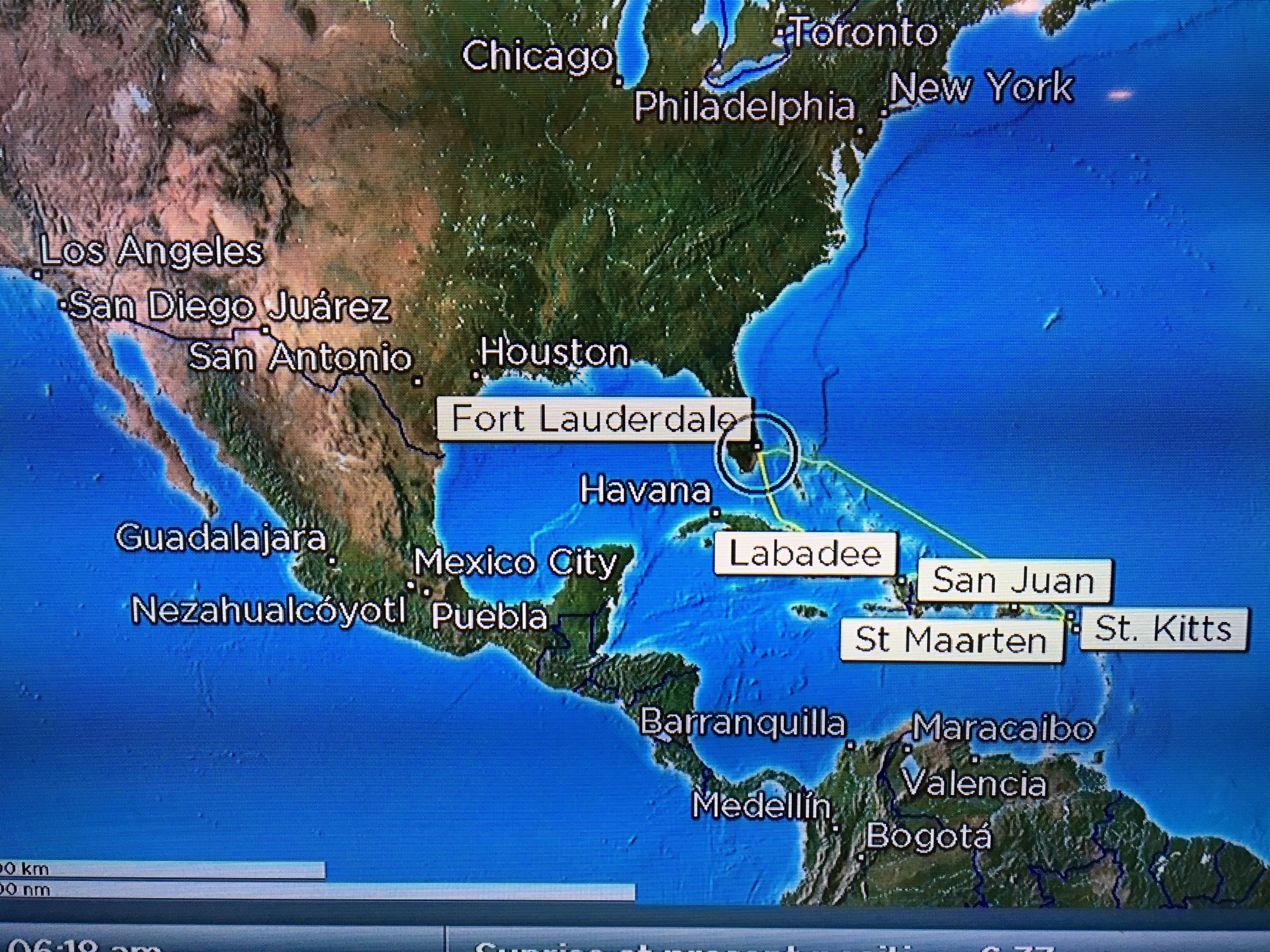 Und natürlich haben wir mehrere Inseln der Antillen angelaufen: Haïti, Puerto Rico, St. Kitts and Nevis (das war der südlichste Punkt) und St. Maarten/St. Martin. Die Tour endete nach zwei weiteren Tagen nur auf See wieder in Fort Lauderdale, Florida. Dann hatten wir insgesamt fast 2400 km zurück gelegt.