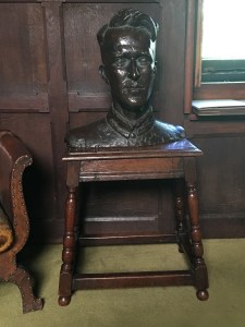 das kleine Denker-Häuschen, das Zelt erinnert an die Zeit in Arabien – a really tiny cottage and a tent outside, keeping some of Arabia’s spirit in Englanddie Büste von T.E. Lawrence auf einem der Hocker, auf denen Thomas Hardys Sarg stand – the bust of T.E. Lawrence standing on one of the stools which carried the coffin of Thomas Hardydas Badezimmer, eine Wanne, aber keine Toilette – the bathroom, a tub but no toilet