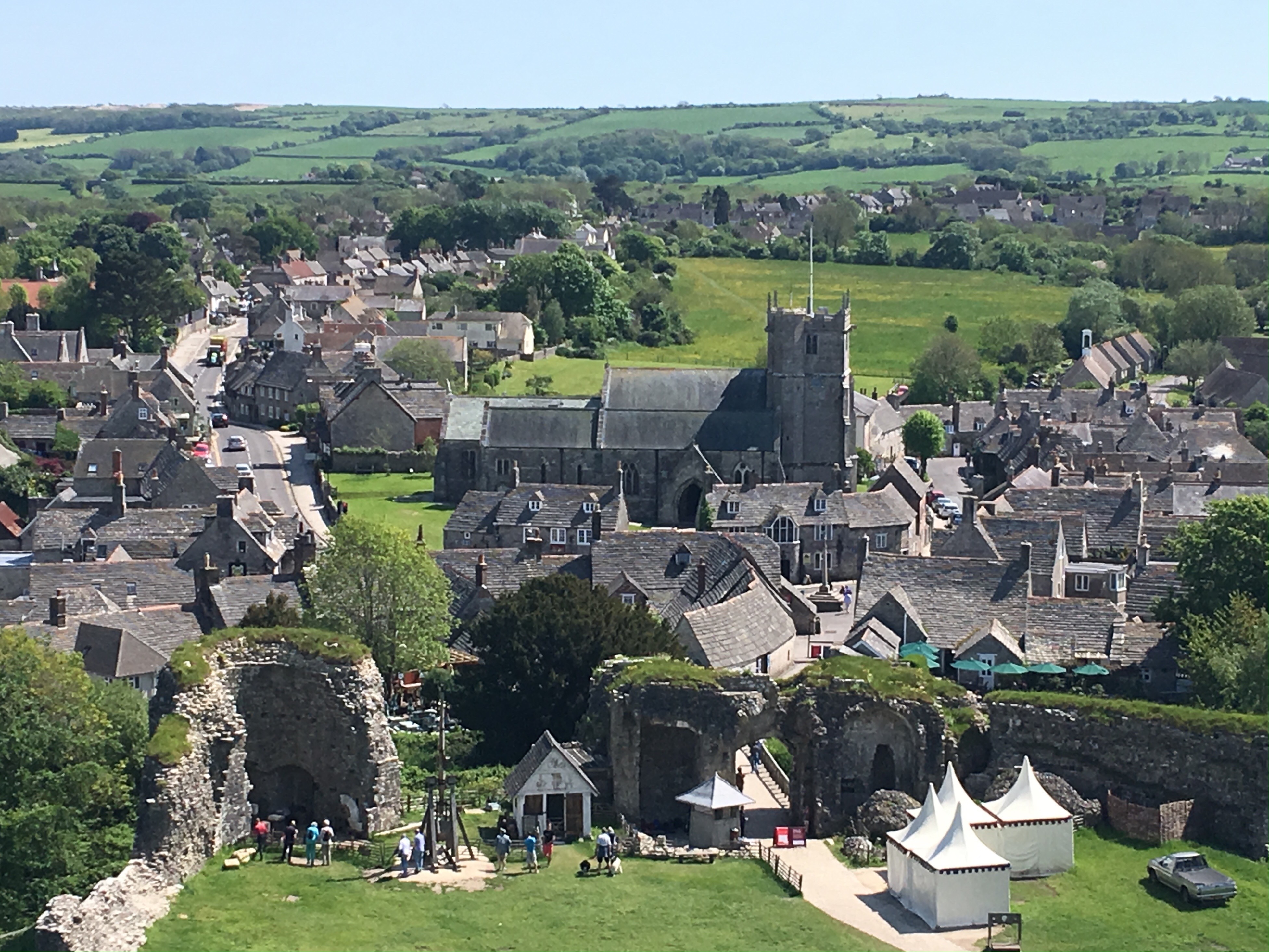 looking towards Corfe Castle from Corfe villagelooking towards Corfe village from Corfe Castleview of Corfe Castle from the tea-room’s garden