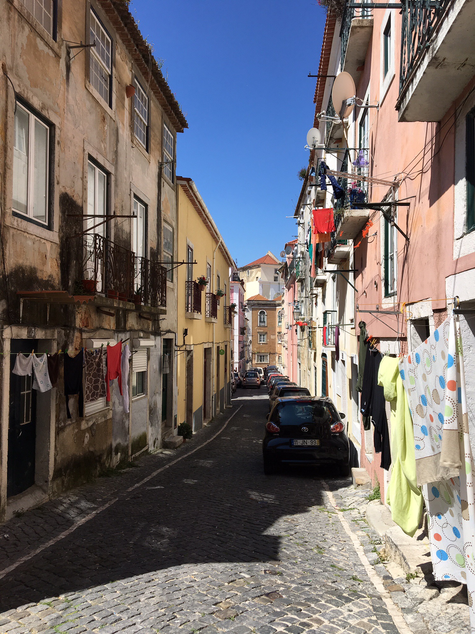 very narrow streets in the old old townCastelo de São Jorge or Castle of St. George, sitting upon Alfama, the oldest quarter of Lisbonthe very representative new buildings after the desastrous earth quake