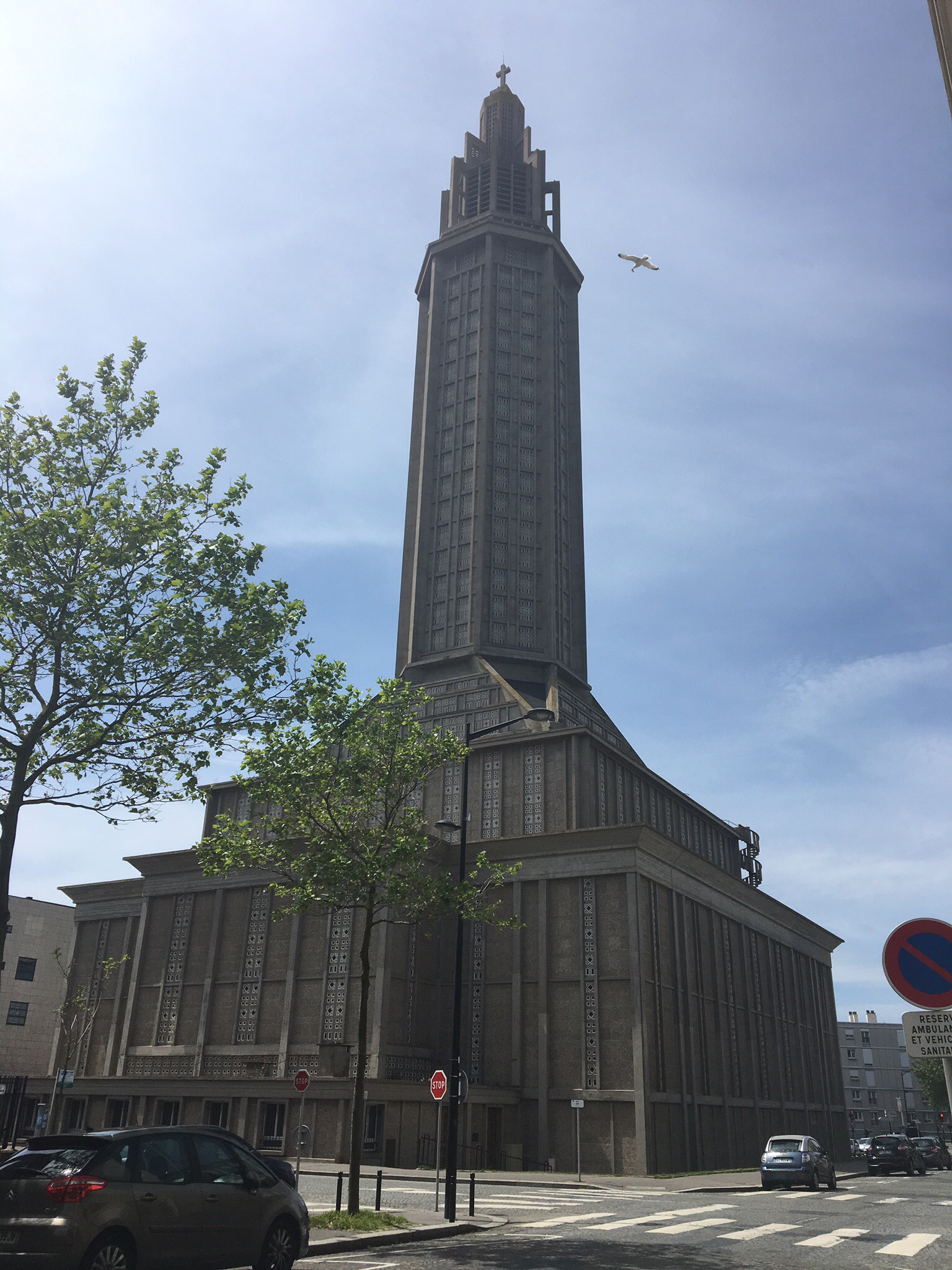 Nach einem letzten Seetag waren wir dann in Le Havre. Sehr viele unserer Mitreisenden sind nach Paris gefahren. Le Havre wurde als der Hafen von Paris angekündigt, die Distanz von 200 km zwischen beiden Städten wurde wohlweislich verschwiegen. Die Tagesausflüge dorthin dauerten zehn Stunden. Wir wollten lieber in Le Havre bleiben, obwohl die Stadt vom Schiff aus einen wenig attraktiven Eindruck machte, aber das änderte sich schnell. Mit dem am Kai erhältlichen Tagesticket für den Bus-Shuttle in die Innenstadt konnte man auch das gesamte Busnetz der Stadt benutzen. Die Innenstadt ist Weltkulturerbe. Ein Stadtteil davon ist nach dem Krieg vom Architekten Auguste Perret in einem Guß geplant und aufgebaut worden. Wir wussten bis dahin nicht, dass man auch schön mit Beton bauen kann. Besonders hat es uns die Kirche St.Joseph angetan, ein wunderschön gestaltetes Bauwerk. Mit Crêpes und Espresso beschlossen wir den schönen Nachmittag. Wir mussten ja noch die vielen Koffer packen, damit sie schon am Abend vor der Tür stehen konnten.