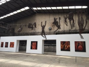 Wir vermissen das Reisen doch schon sehr. Aber das, was uns während der Reise beschäftigte, können wir auch hier haben. Außer der schönen Landschaft gibt es jede Menge Kunst und Kultur in der Heimat. Daher ging es schon vor einigen Tagen nach Büdelsdorf in die Carlshütte zur NordArt. Zeitgenössische Kunst aus Ecken der Welt, in die man sonst nicht so einfach kommt. Diesmal gab es außer vielen chinesischen Künstlern, die immer reichlich vertreten sind, einen israelischen Pavillon mit zum Teil ganz anregenden Exponaten, zum Teil allerdings auch gefüllt mit Objekten, bei denen man sich streiten kann, ob die Kitschgrenze nicht doch schon überschritten wurde. Im Skulpturengarten standen altvertraute Bekannte, aber auch interessantes neues herum. Glücklicherweise hatten wir uns den zuerst angesehen, bevor der Dauerplatzregen begann. Aber die Kunststudentinnen, die dort jobben, sind sehr nett. Nach dem Besuch der Wagenremise begleitete uns eine von ihnen mit einem großen Schirm zu den Hallen der ehemaligen Eisengießerei.