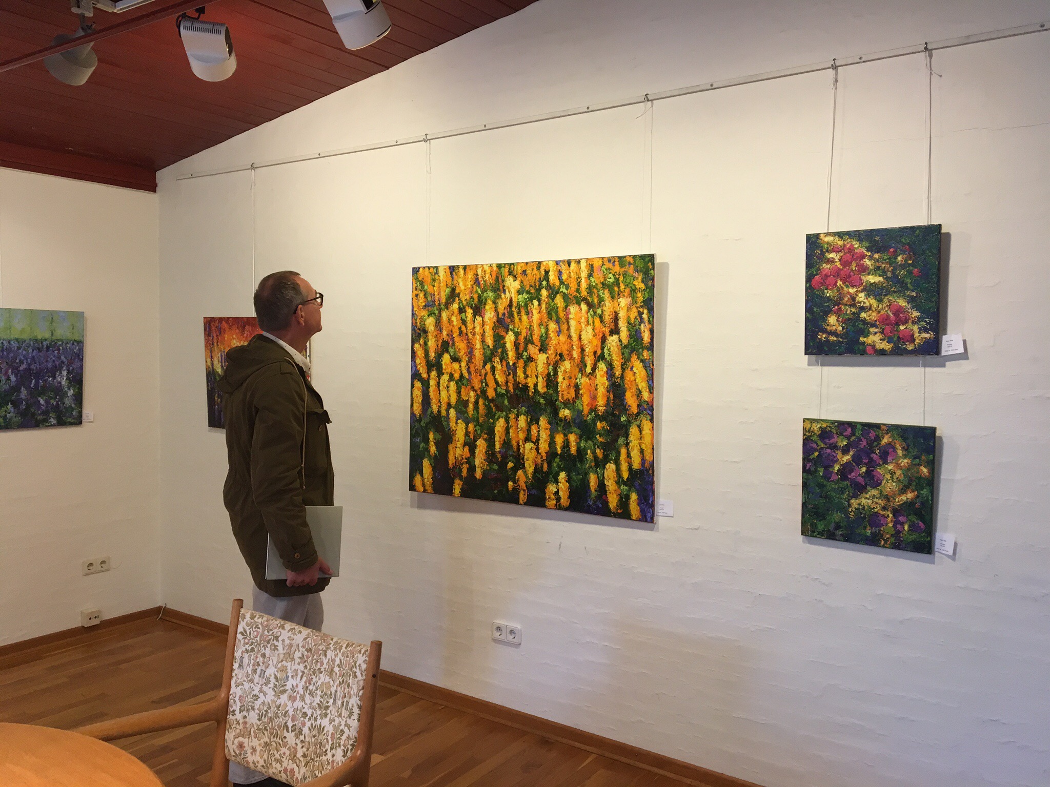 Gestern waren wir auf Entdeckungsreise in Nordfriesland. Wir begannen in Hattstedt auf dem Mikkelberg, dem nordischen Center für Kunst und Crickett (eine lustige Mischung, oder?). In der diesjährigen Sommerausstellung „Unerwartete Wege“ werden Bilder der dänischen Malerin Joan Riis und des deutschen Malers Uwe Carstens aus Hamburg gezeigt. Letztere trafen so gar nicht unseren Geschmack, zu sehr geprägt von seinem ehemaligen Beruf als Werbegrafiker. Aber die Bilder der Dänin waren klasse.