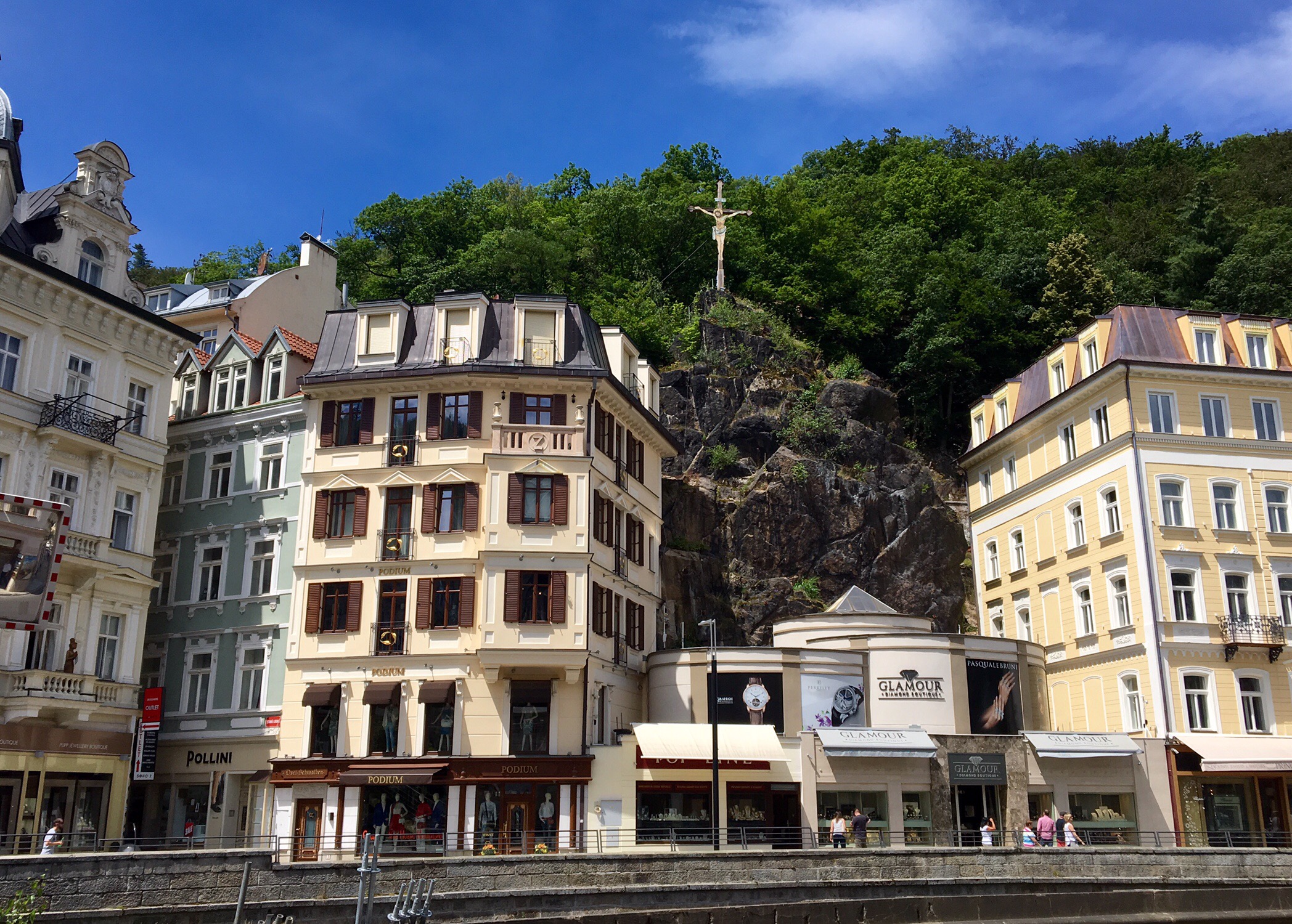 And again, another walking tour around wonderful Carlsbad, even when it rains. Well, it wasn’t while we were walking. Famous German poet Mr Goethe was here several times and he looooved it, the spa, the beer and the nice young ladies he met here. So there are Goethe paths, busts, plagues and, and, and … And a tower on top of the highest hilltop around Carlsbad. The tower was built by a very famous architectural duo, Fellner and Hilmer from Vienna. They built a lot of the very grand places in Carlsbad, but were famous for their theatre buildings all over in Europe.