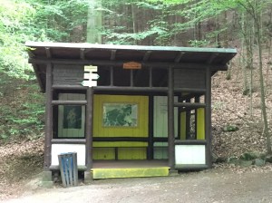 Weiter ging’s bergauf, bis wir auf 641 m Höhe am Aussichtsturm ankamen, die höchste Stelle, die man auf den Wanderungen rund um Karlsbad erklimmen kann. Da dort aber nichts weiter zu holen war, gingen wir gleich wieder hinunter in die Stadt, diesmal auf einem wesentlich steileren Pfad durch den regennassen Wald. Danach hatten wir kurtechnisch wieder genügend Kalorien verbrannt. Also ging es hinein in den Supermarkt und wieder hinaus mit leckeren tschechischen Schokowaffeln. So lässt sich die Zeit bis zum Abendessen gut überbrücken.