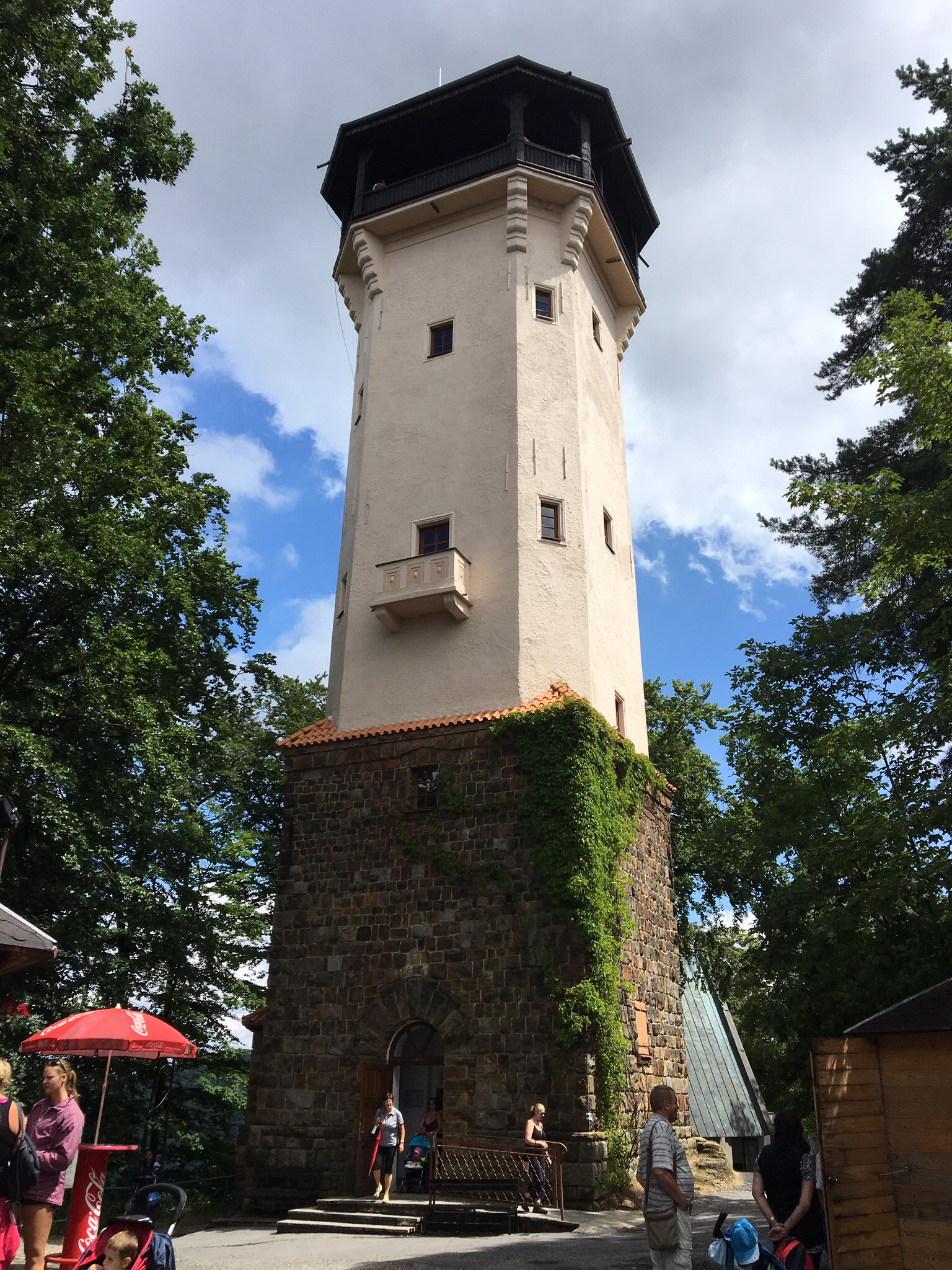 Das mit der Kombination zweier Wanderwege ist eine gute Sache, haben wir heute wieder gemacht, diesmal Nr. 18 hoch zum Goethe-Aussichtsturm und dann Nr. 12 hinab zum Hotel. Goethe soll mal gesagt haben, dass er nur in drei Städten gern leben möchte, in Weimar, in Karlsbad und in Rom. Hier in Karlsbad war er jedenfalls sehr oft, wahrscheinlich haben die Stadtväter auch deshalb etliches nach ihm benannt. So eben auch diesen Turm, der auch einen Gaststättenbetrieb hatte, irgendwann mal, aber nicht vor acht Jahren und auch nicht heute, als wir da waren.
