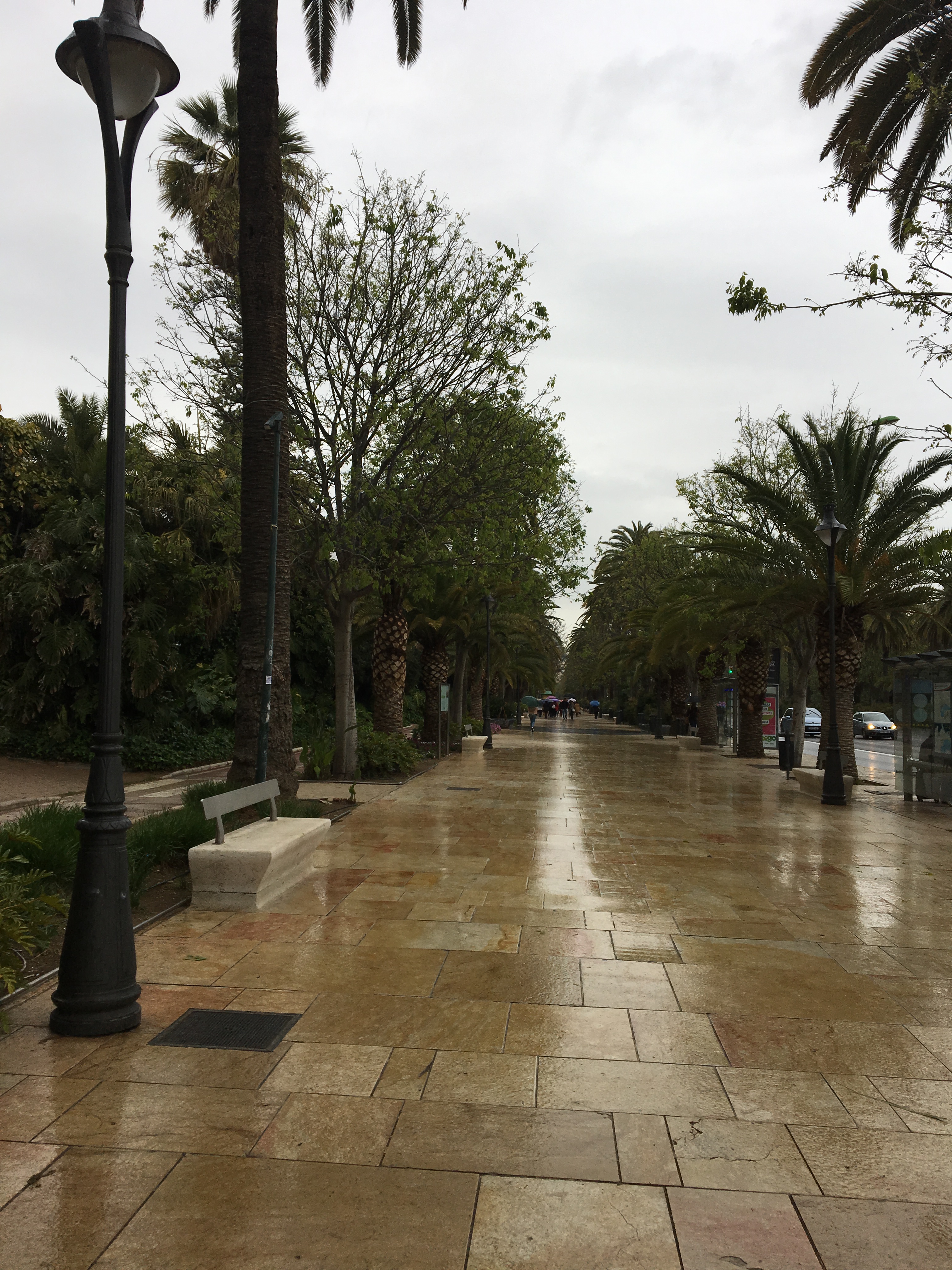 Heute geht es mit dem Bus M-210 immer an der Küste entlang nach Málaga, durch sympathisch aussehende Vororte, noch weitgehend ohne sonnenhungrige Touristen. Das Tief, das die Einheimischen in ihren gesteppten Winterjacken, aber nicht in Winterstarre verharren lässt, bringt für uns angenehme 17 Grad Celsius und einen bewölkten Himmel mit sich.