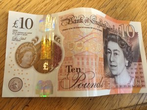 Falls noch jemand eine alte 10-Pfund-Note zuhause herumliegen hat, die ist seit dem 1. März ungültig und wird nur in einigen Banken gegen neue getauscht, wir hatten bei HBSC Glück.