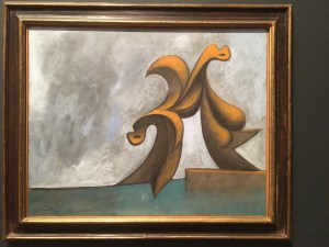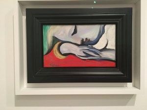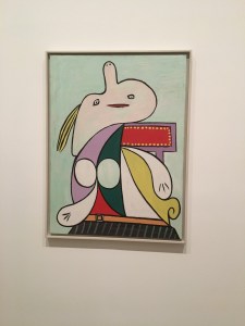 Nach einer Erholungspause für die Beine geht es in die Ausstellung „Picasso 1932“ mit dem Untertitel „Love, Fame, Tragedy“. Chronologisch Monat für Monat werden die Werke mit Informationen zu den Ereignissen des jeweiligen Zeitabschnitts gezeigt und in Beziehung zueinander gesetzt. Es ist kaum zu glauben, dass in einem Jahr so eine vielfältige Produktivität möglich sein konnte. Picasso war etabliert und wohlhabend, gerade 50 geworden, wollte aber gleichzeitig derjenige sein, der immer noch in vorderster Front radikal neues erschaffen kann. Er hatte sich ein Herrenhaus in der Normandie gekauft und führte ein respektables bourgeoises Leben mit Frau und Sohn. Gleichzeitig pflegte er eine geheime Liebschaft mit seinem Modell. Er experimentierte mit Skulpturen, probierte den Surrealismus aus und stand in der Wahl der Farben in ständiger Konkurrenz zu seinem Freund Matisse. Es entstanden wunderbare Werke in diesem einen Jahr: