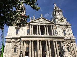 Nachdem wir immer wieder in Sicht-, manchmal auch in Reichweite von St Paul‘s Cathedral waren, wollen wir auch mal hinein, um sie zu besichtigen. Dafür zahlt man aber £ 18 Eintritt. Das erscheint uns dann doch zu happig und wir kommen lieber rechtzeitig vor 17 Uhr zum Evensong. Gottesdienstbesuche kosten nichts. Und der sehr festgelegte Ablauf (wann man steht bzw. sitzt, steht im Ablauf), selbst das Singen übernimmt der Chor, erlaubt einem Zeit, das wunderschöne Interieur zu bestaunen. Wir sind rechtzeitig da und interpretieren die Ansage vor dem Gottesdienst richtig, springen von unseren Sitzen unterhalb der Kuppel auf, reihen uns in die entstehende Schlange ein und dürfen Plätze im Chorgestühl einnehmen. Wir sitzen komfortabel in den recht breiten Bischofsstühlen und genießen die Musik.