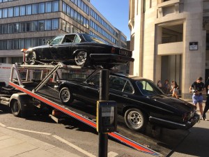 beide Jaguare mit dem gleichen Nummernschild Eine Unmenge von LKW mit Equipment, hier alles für die Green Screen Aufnahmen