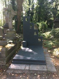 Hier liegt die erste erfolgreiche lesbische Schriftstellerin Englands, Radclyffe Hall (1880-1943), begraben am Eingang der Grabkammer ihrer ersten Geliebten, mit der sie nach dem Tod deren Ehemanns, der dort auch begraben ist, offen zusammenlebte.