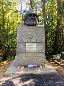Der berühmteste Tote hier ist wohl Karl Marx, der, als er starb, in einem sehr bescheidenen Grab mit nur elf Trauernden beigesetzt wurde. 1953 wurde er und seine Familienangehörigen umgebettet. Das Grab krönt eine riesige Bronzebüste auf einem Marmorsockel, und alles wurde von der Kommunistischen Partei Großbritanniens bezahlt.