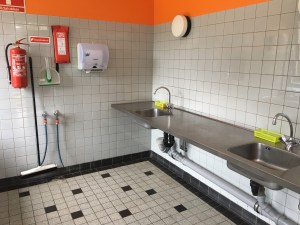 Die sanitären Anlagen sind spotless clean, nicht einmal Spinnennetze in den Ecken oder Fliegenleichen in den Glasabdeckungen der Deckenlampen sind zu sehen. Im Gegensatz zu den USA wird hier die Reinigung nicht an ‚billig-billig‘ outgescourced, sondern selbst durchgeführt, wie in GB auch.