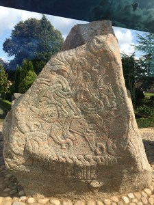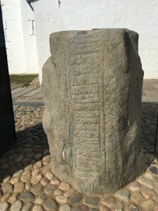 Diese bestehen aus zwei Grabhügeln, zwischen denen die Kirche liegt. Neben ihrem Eingang stehen die zwei berühmten Runensteine. Das neue Königsgeschlecht aus Jelling musste ein deutliches Zeichen ihrer Macht setzen. Das taten sie auf der höchsten Stelle in der Mitte Jütlands, in der Mitte zwischen den damals bedeutendsten Städten Århus und Ribe. Und es scheint ihnen gelungen zu sein, denn schon die nächste Generation stellte auch die Könige in England.