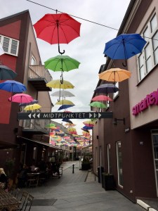 Wir starten in der Fußgängerzone, fast einen Kilometer lang, mit einem schönen glatten Granitbelag (auch wenn das Foto etwas anderes suggeriert) und von zwei Flüssen begrenzt, im Norden von der Mühlenau, im Süden von der Vejle-Au.