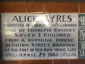 Im Postman’s Park, nur einmal die Straße Little Britain entlang, gibt es eine einzigartige Erinnerungswand an ganz normale Menschen, die andere unter Einsatz ihres Lebens gerettet haben. Die handgemalten Fliesen erinnern z.B. an Alice Ayres, die drei Kinder aus einem brennenden Haus gerettet hat. Andere wurden vor dem Ertrinken gerettet oder vom Eis oder anderen Gefahren des Alltags.
