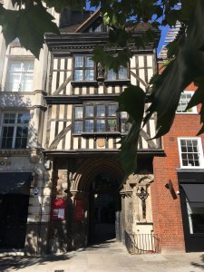 Das Torhaus selbst ist ein schönes Beispiel für Architektur aus Tudorzeiten und wird entsprechend häufig fotografiert. Als wir das auch machten, erzählte uns ein Straßenarbeiter, der grad etwas Zeit hatte, eine viel spannendere Geschichte als die von der Rettung vorm Großen Feuer. Irgendwann im 18. Jahrhundert fand der damalige Besitzer des Hauses die Tudor-Fassade zu altmodisch und baute eine schöne neue Fassade nach dem damaligen Zeitgeschmack. Das Gebäude wurde zweihundert Jahre als Ladengeschäft genutzt und das Wissen um den alten Zustand verschwand. 1917 traf bei einem Bombenangriff eine Bombe aus einem deutschen Zeppelin den Ort und enthüllte die alte Fassade. Der Straßenarbeiter meinte ganz ernsthaft, dass manchmal auch Bomben etwas gutes tun. 1932 wurde das Torhaus renoviert und von 1948 bis 1979 als Montessori-Schule genutzt. Heute ist es ein Privathaus.