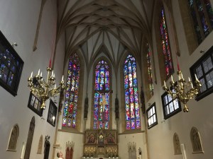 Die Stiegenkirche ist die älteste Pfarrkirche von Graz und liegt versteckt hinter den mächtigen Mauern eines ehemaligen Augustinerklosters. Man steigt zwei hohe Treppen hinauf, die schon Teil der Kirche sind, und tritt dann durch eine dicke Tür aus dem Jahr 1631 hinein in eine schlicht und modern gehaltene Kirche, vor allem von Studierenden genutzt.