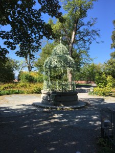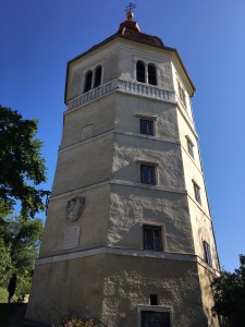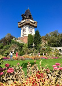 Die Franziskanerkirche und das angeschlossene Kloster geben dem dicht bebauten Viertel seinen Namen. Selbst die Verkaufsstände reichen bis an die Kirchenmauer heran. Im Innenhof des Kreuzgangs ist dagegen vom Lärm rundherum nichts zu hören. Der mächtige Wehrturm passt so gar nicht zu einer Kirche eines Bettelordens. Der Turm wurde von der Stadt gebaut und bezahlt, da er einen guten Weitblick über die Mur und das gesamte Tal bietet.