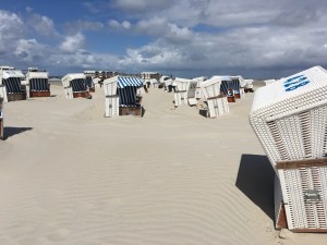Die Nordfriesen sind ja ein altes Volk von Strandräubern, heutzutage sitzen sie windgeschützt in kleinen Holzhäuschen und kassieren erst einmal 3 Euro Eintritt in die große Sandkiste. Was man sonst noch dafür als Gegenleistung bekommt, wir wissen es nicht. Jedenfalls nicht gratis WLAN oder überhaupt einen belastbaren Handyempfang, nicht einmal später in der Hauptshopping-Meile für die Touristen.