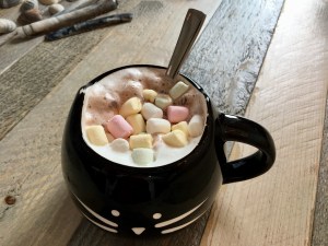 Nach einer Stunde Fußmarsch Richtung Norden bekommen wir am nächsten Pfahlbau Gelegenheit, unser Geld doch loszuwerden, allerdings im Tausch für kleine Köstlichkeiten wie heiße Schokolade oder auch Waffeln mit Erdbeeren. Wir kommen dort ohne Regen an, obwohl die Wolken sich wirklich bedrohlich schwarz vor uns auftürmen.