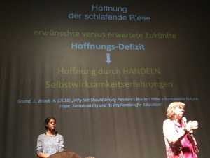 Die Vorträge und Workshops, die im Theater im Bühnenraum stattfanden, wurden von einer Moderatorin des Bayerischen Rundfunks geleitet. Beim Vortrag von Prof. Manfred Spitzer saßen wir allerdings im Theaterzuschauerraum selbst, so viele Menschen wollten ihn sehen und hören.