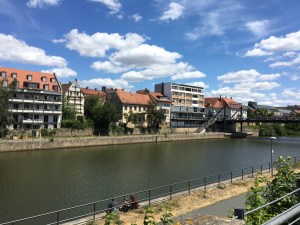 Wir wollten also nichts kaufen, daher haben wir einen kleinen Stadtrundgang gemacht. Die Innenstadt Bambergs besteht aus drei größeren Stadtteilen, der Gärtnerstadt auf der einen Seite, der Bergstadt auf der anderen Seite und der Inselstadt in der Mitte, umgeben vom linken und dem rechten Regnitzarm, letzterer ist gleichzeitig der Main-Donau-Kanal. Zum Welterbegebiet gehören Teile aller drei Innenstadtareale.