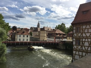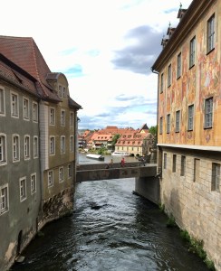 Inzwischen sind wir in Bamberg, das auch eine kleine Reise wert ist. Die gesamte Altstadt ist UNESCO-Weltkulturerbe, ein herausragendes und charakteristisches Beispiel einer frühmittelalterlichen, mitteleuropäischen Stadt. Während der wirtschaftlichen Blüte der Stadt ab dem 12. Jahrhundert beeinflusste Bambergs Architektur den Norden Deutschlands und Ungarn.